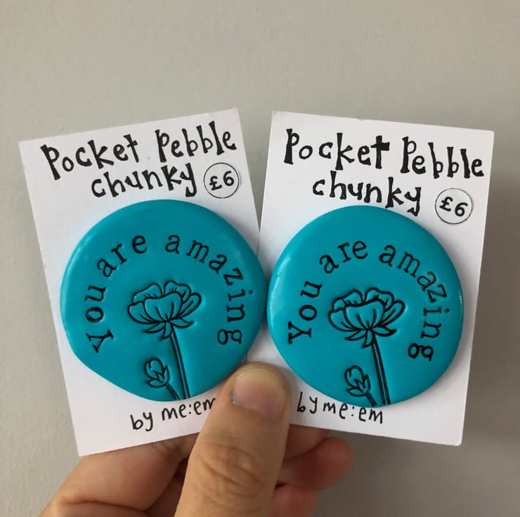 Made with four times as much clay, with larger text, these lovely large style pebbles are perfect for younger, older or hands of any age in between, to hold and treasure. I have included an image of a chunky pebble alongside the standard size for comparison.