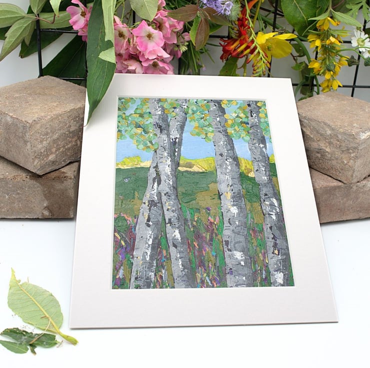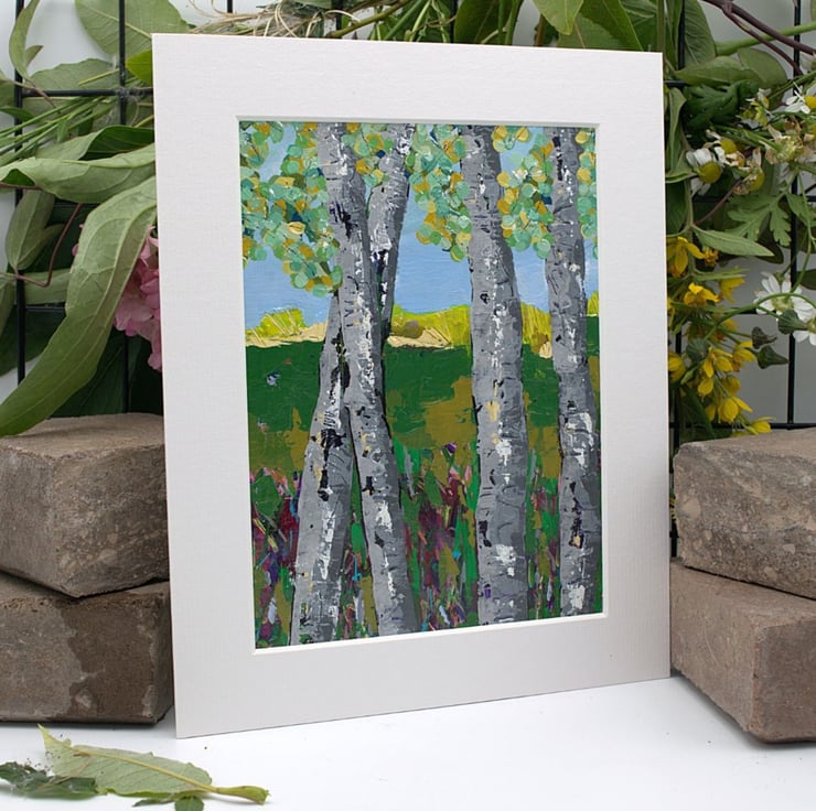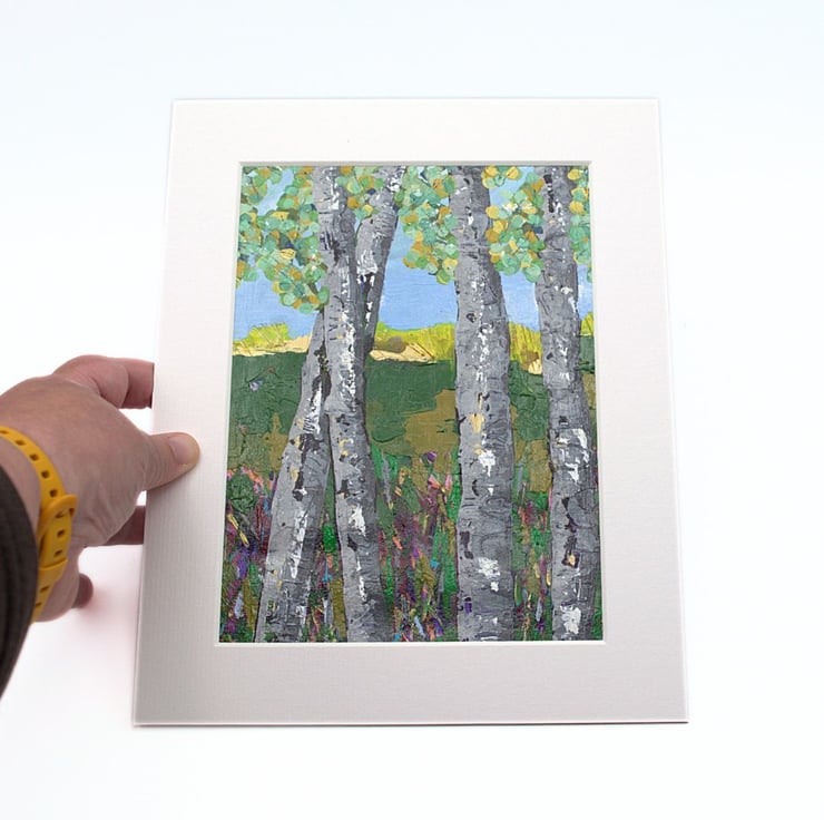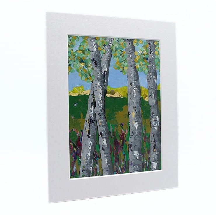 This mounted painting of trees will be shipped by 1st class Royal Mail in a reinforced, hard-backed envelope.