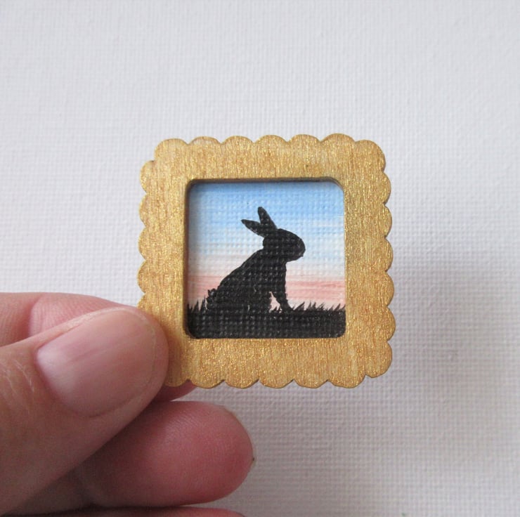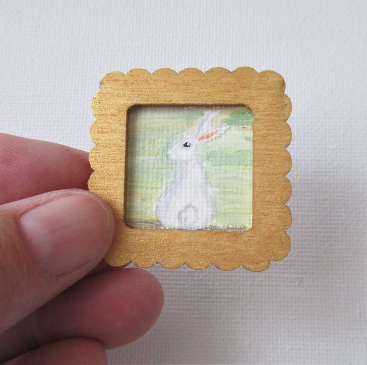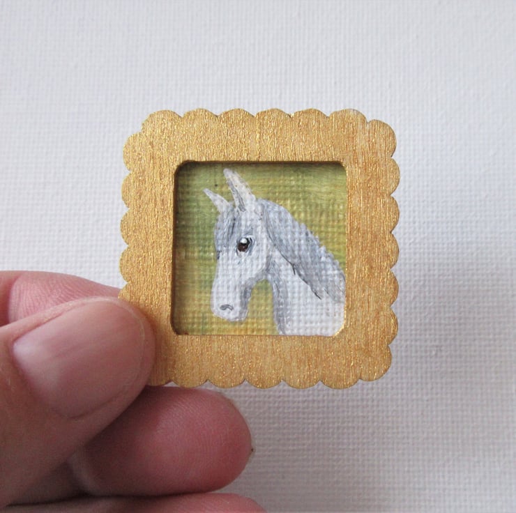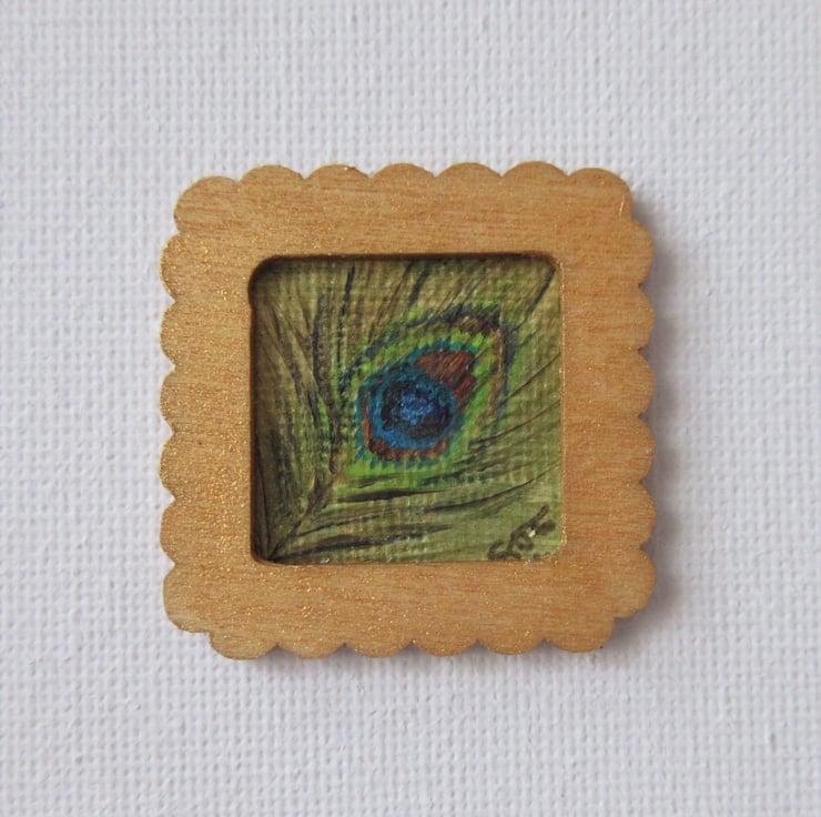 These are framed in thin wooden frames, which have been painted in gold acrylic paint. The frames measure a maximum of 3.5 x 3.5cms. The paintings themselves are 1" x 1".