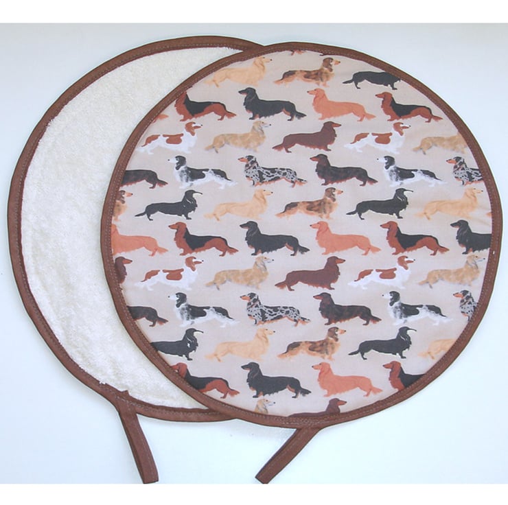Each mat has three layers - Facing cotton fabric, a layer of padding and a layer of towelling - Making it also suitable for mopping up and pot-grabbing!