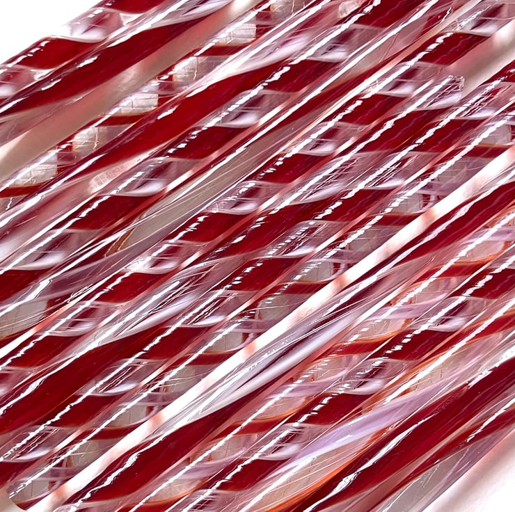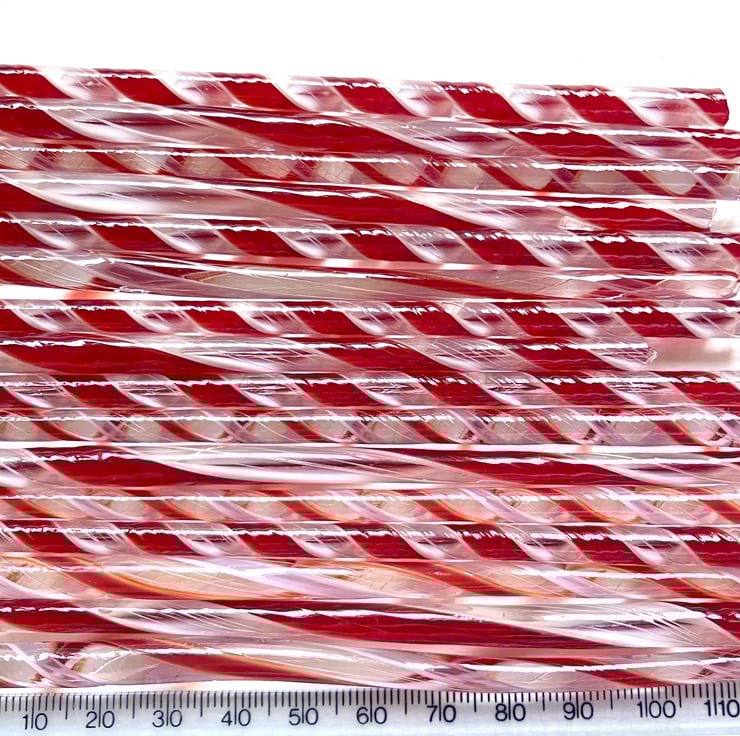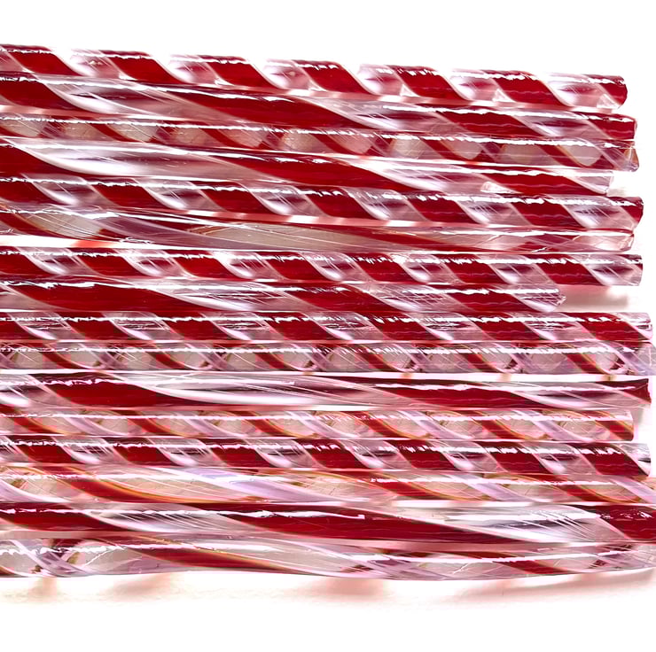 Christmas pack of twisty cane off cuts in red and white lacy patterns.