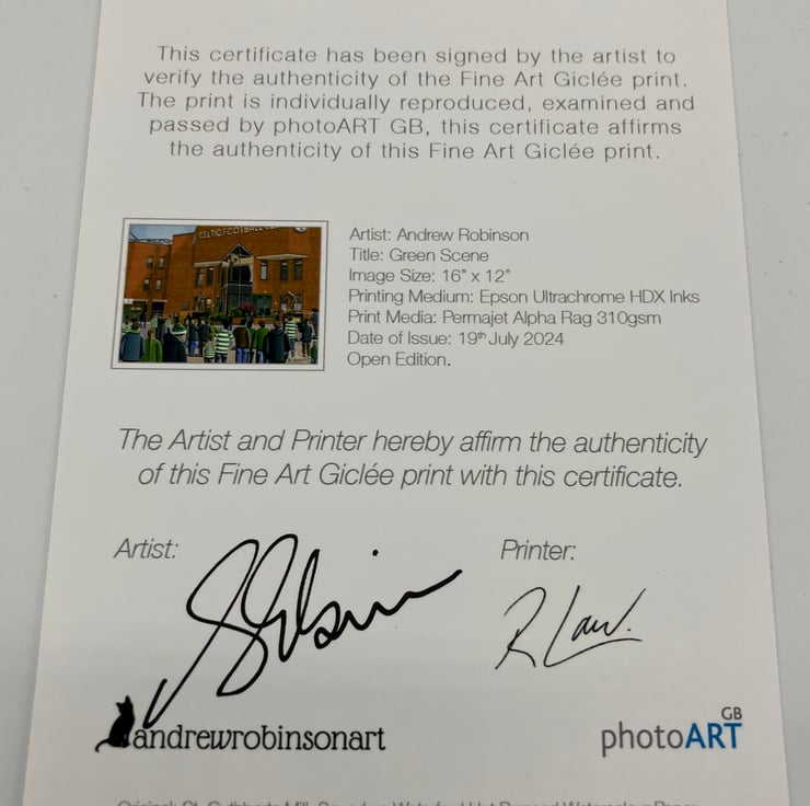 Titled ‘Green Scene’ this is a unique Celtic print direct from myself the artist. My artworks are a celebration of the match day experience and of stadium architecture.