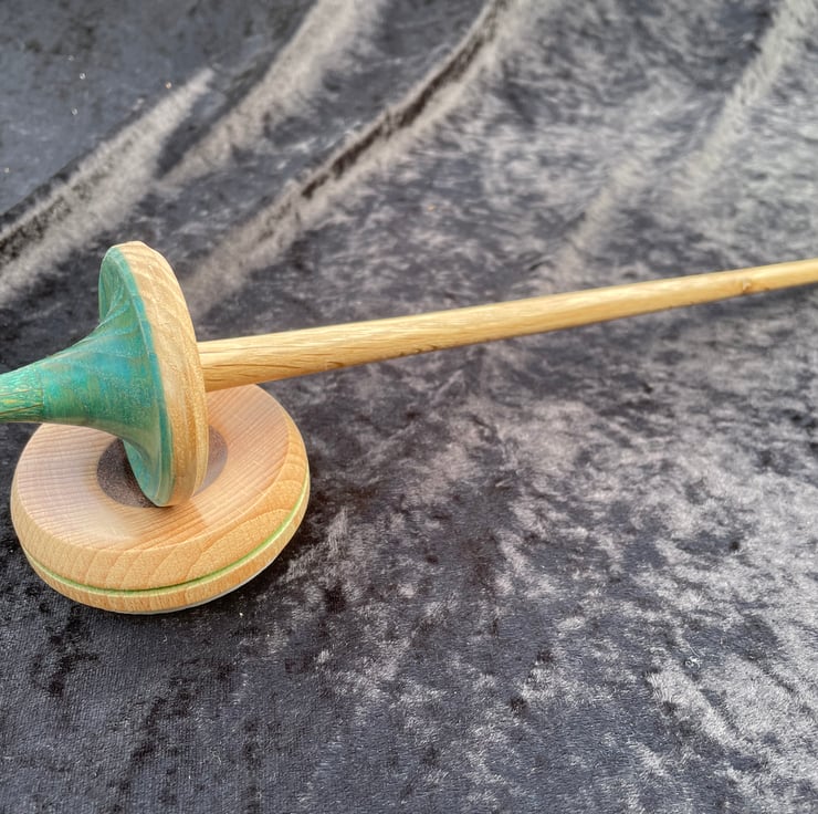 A handcrafted supported spindle with bowl to match. It’s a mix of Oak,Ash and mahogany with stain highlights all finished in quality wax. It’s 35 grams ( 1.2oz) and 31cm overall length