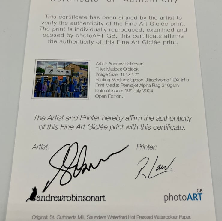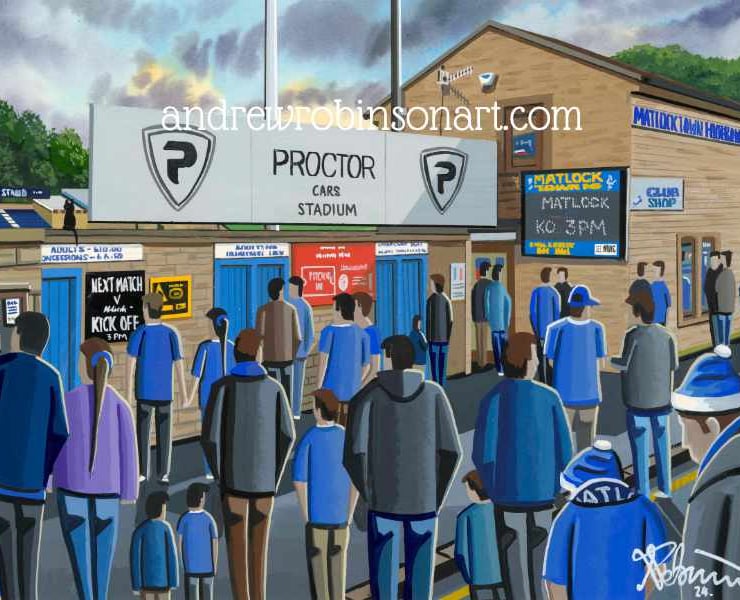 Titled ‘Matlock O'Clock’ this is a unique Matlock print direct from myself the artist. My artworks are a celebration of the match day experience and of stadium architecture.
