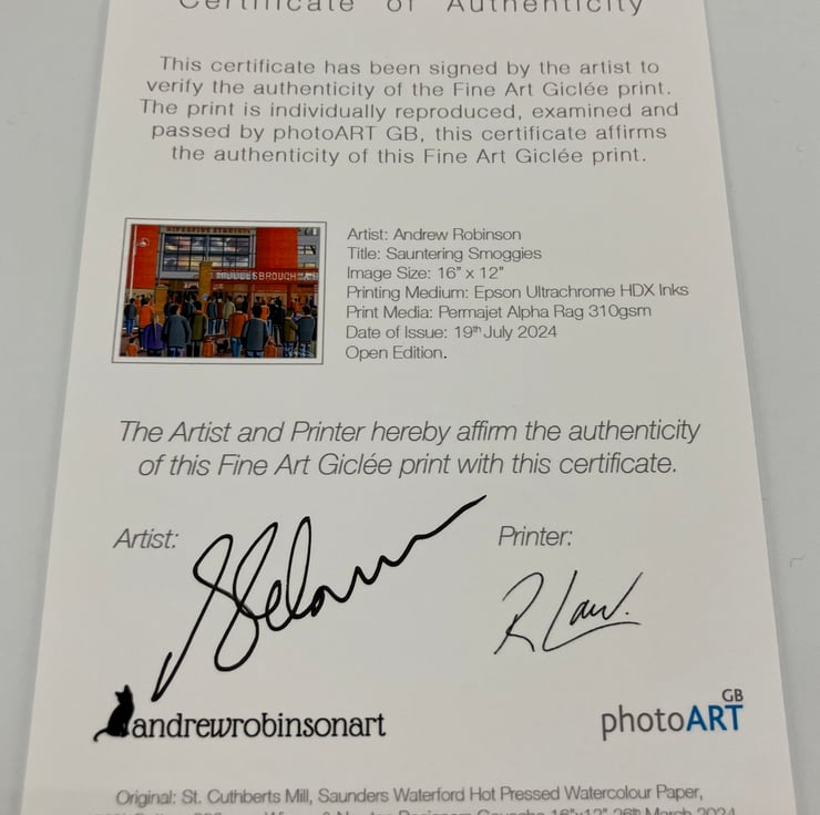 Titled ‘Sauntering Smoggies’ this is a unique Middlesbrough print direct from myself the artist. My artworks are a celebration of the match day experience and of stadium architecture.