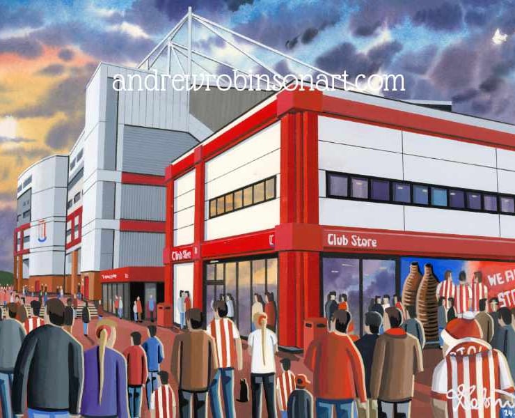Titled ‘Stoke Folk’ this is a unique Stoke print direct from myself the artist. My artworks are a celebration of the match day experience and of stadium architecture.