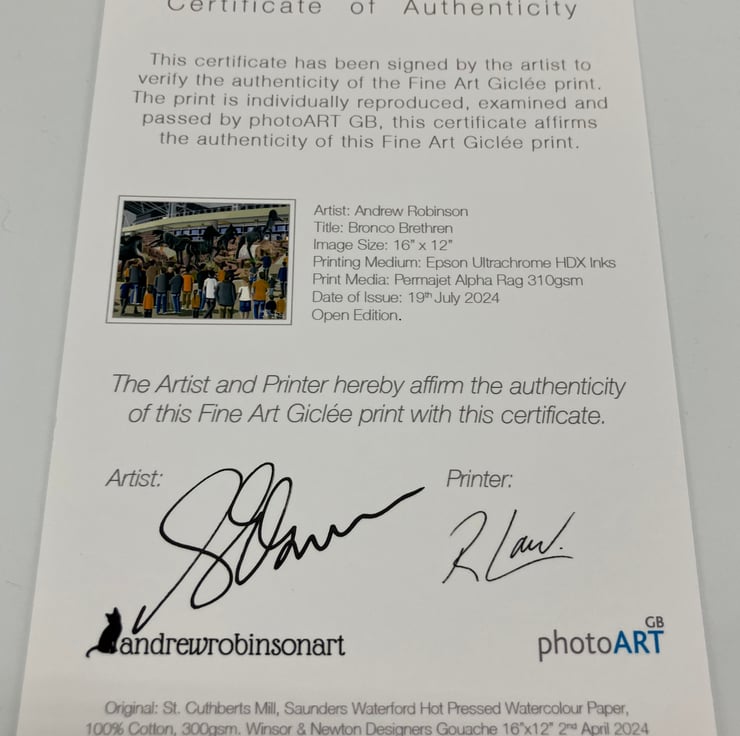 Titled ‘Bronco Brethren' this is a unique Denver NFL framed print direct from myself the artist. My artworks are a celebration of the match day experience and of stadium architecture.