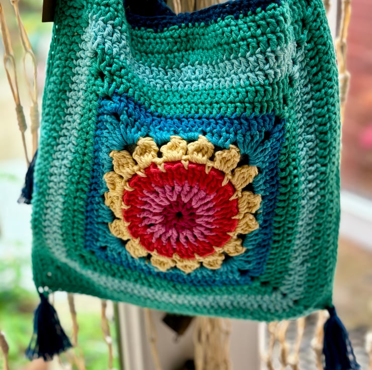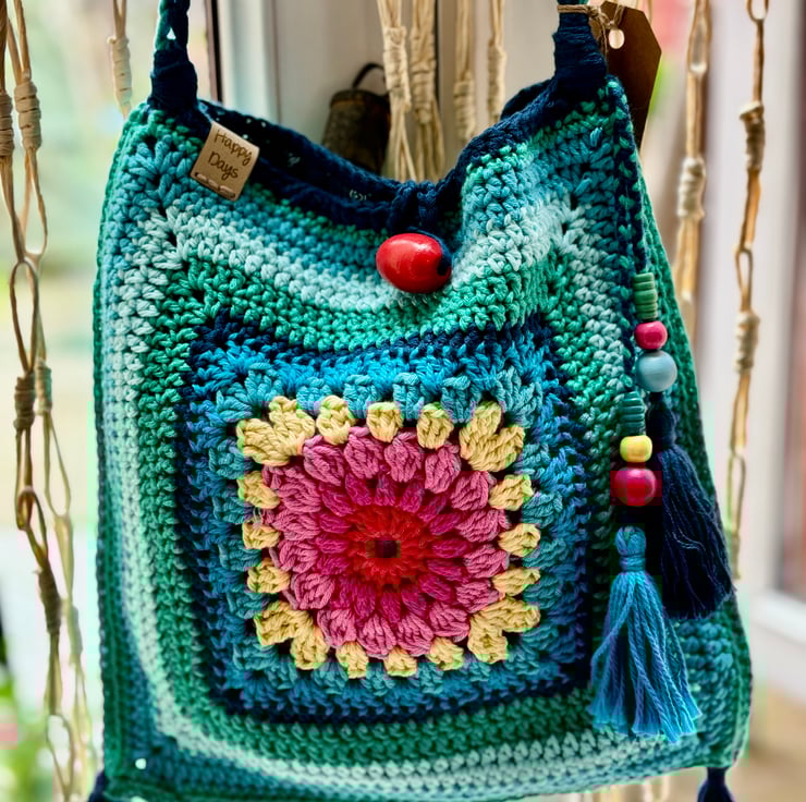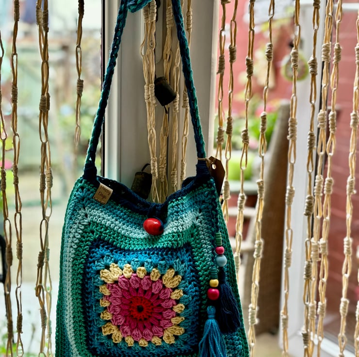 Crochet bag in soft cotton, shoulder or cross body bag great for holidays festivals and summer days, fully lined , all hand made