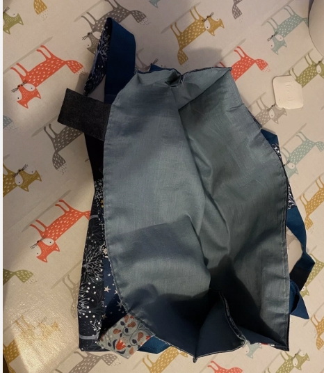 Handmade Patchwork Tote Bag that folds up to pop in handbag. Fully lined.