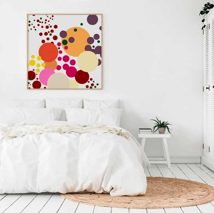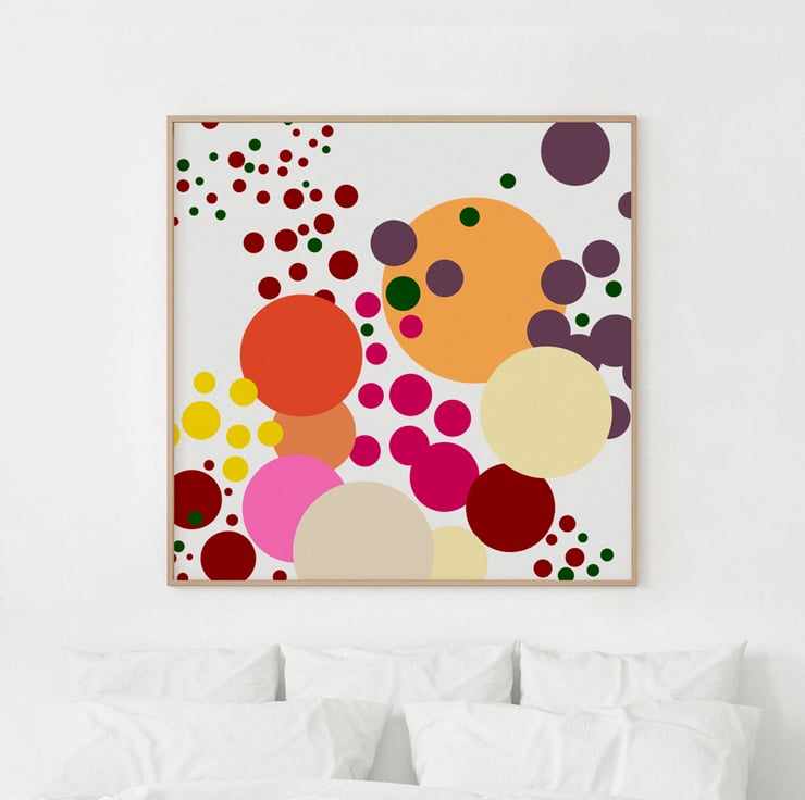 The geometric patterns lend a modern and artistic touch, turning this piece into a contemporary botanical masterpiece. Hang it on your wall to infuse any space with the freshness and energy of a blooming garden, captured in a unique and abstract form. Let the play of shapes and colours evoke a sense of joy and nature's beauty in your living space.