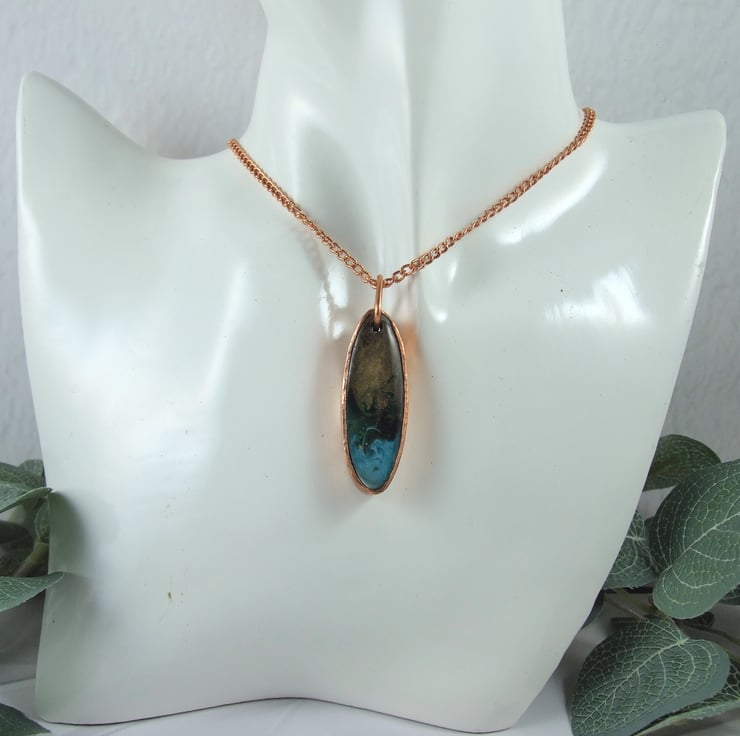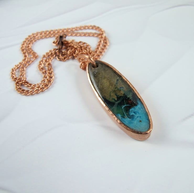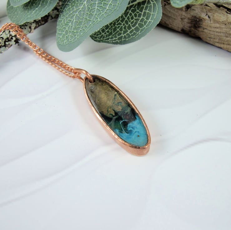 Handmade Resin Art and Copper necklace. Pure copper necklace and chain with one of a kind resin art cabachon.
