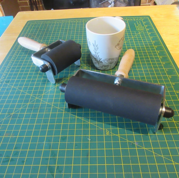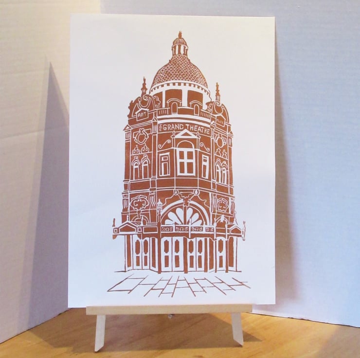 Lino print in a single colour printed by hand using a Victorian Screwpress on A2 (approx 42 x 30 cms) paper. Unmounted.