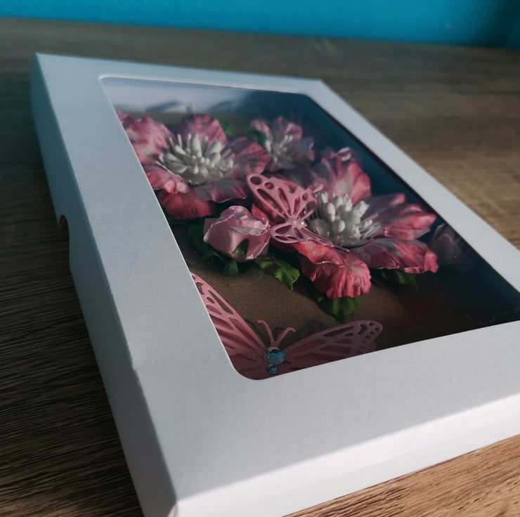 Pink butterfly flowers - Very luxury handmade keepsake greeting card with box