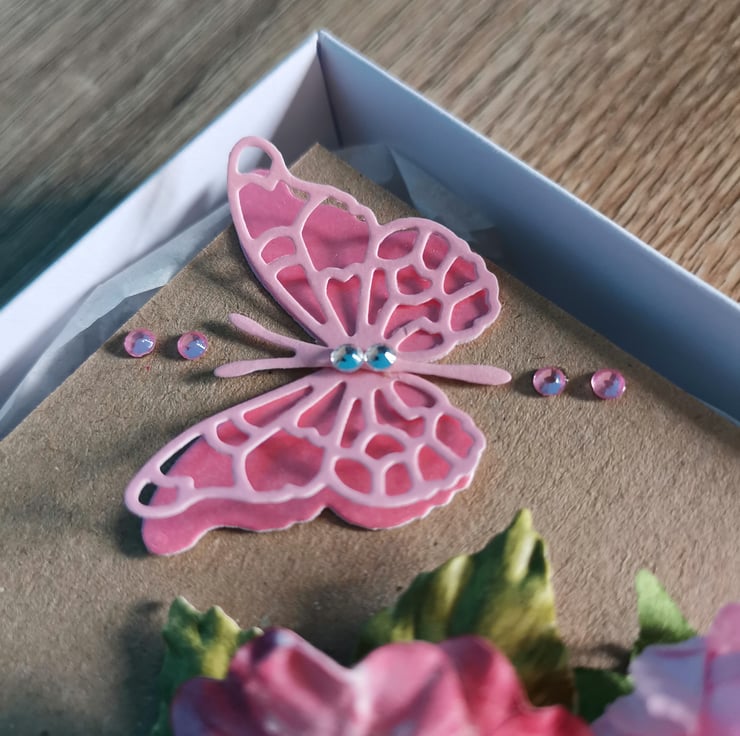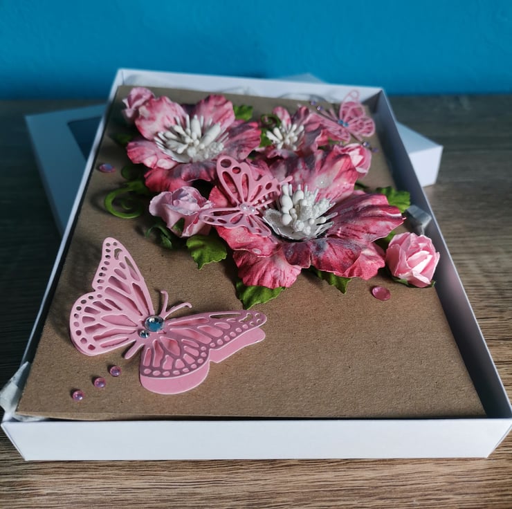 Pink  butterfly flowers - Very luxury handmade keepsake greeting card with box