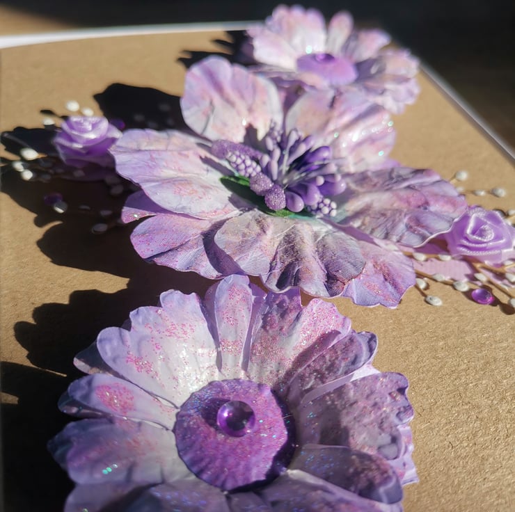 Purple flowers luxury handmade keepsake flower card - Handmade luxury keepsake