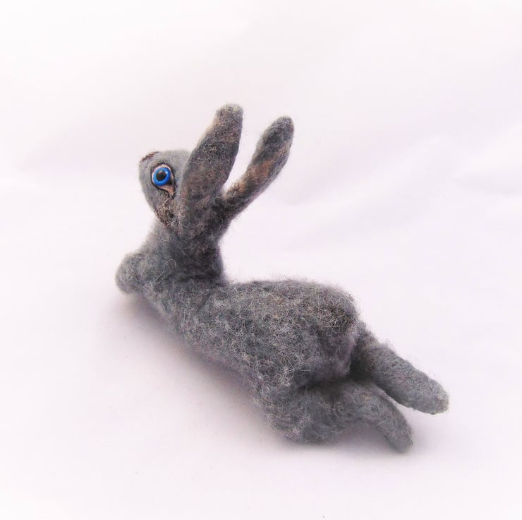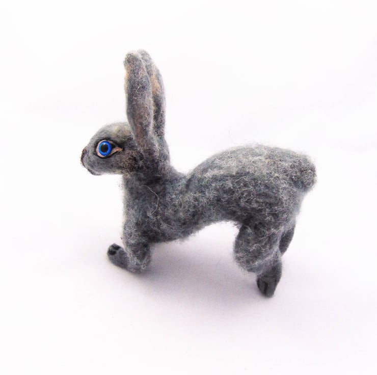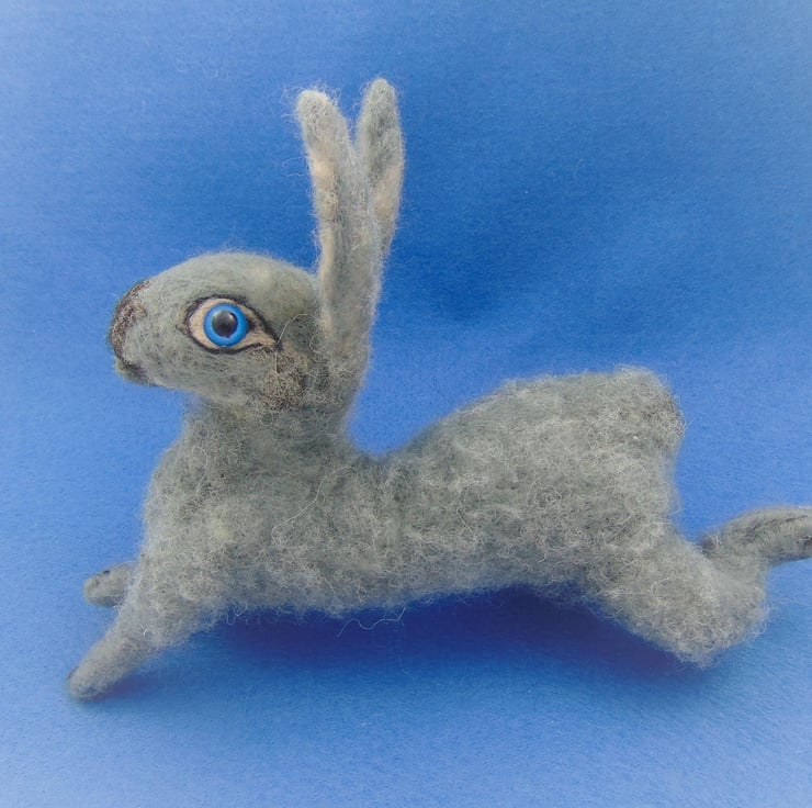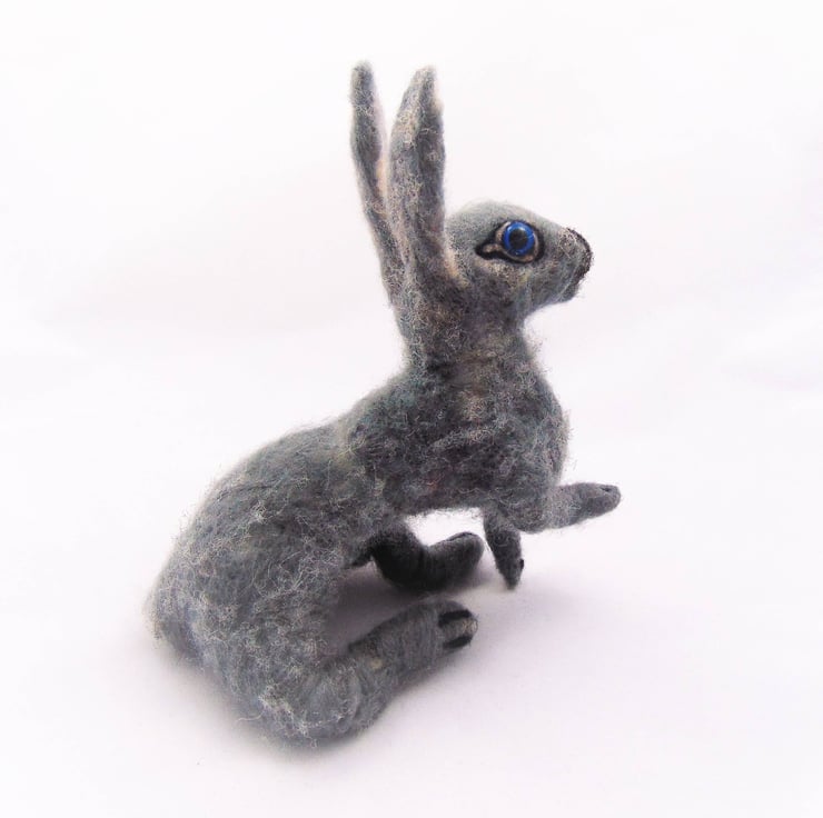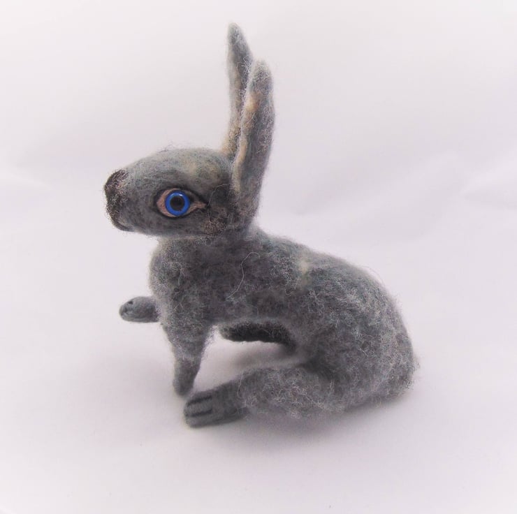 She has been created over a soft wire armature, with natural wool, including fluff from my own pet Swiss Fox rabbit. The Swiss Fox has Angora in its ancestry and I have used her fur (gathered during grooming) in spinning and felting on occasion.