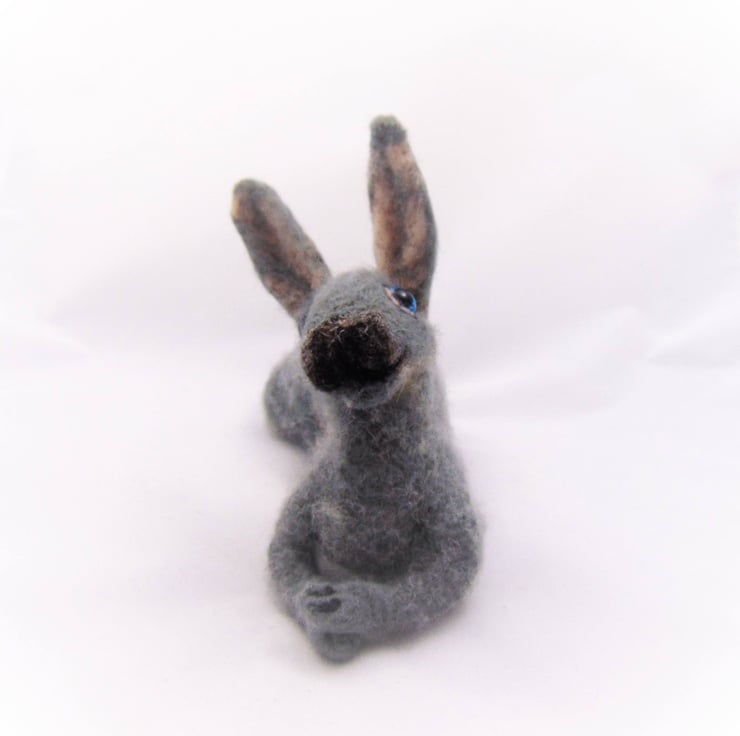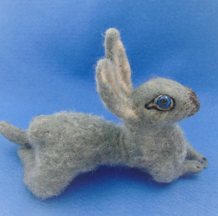 She is soft and can therefore be posed into different positions, but the one she was made for is the cute lying-down-with-legs-stuck-out-behind position that will be familiar to anyone who has kept rabbits.