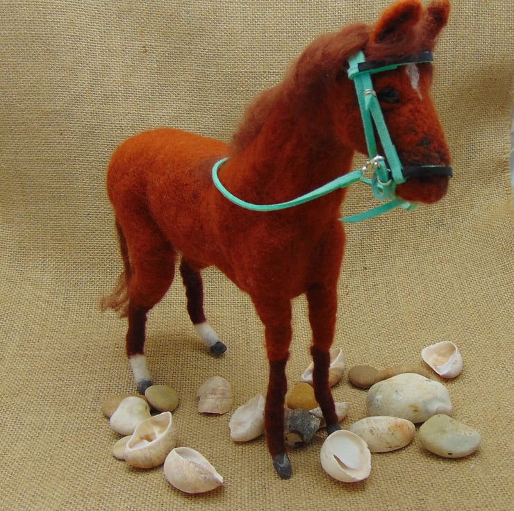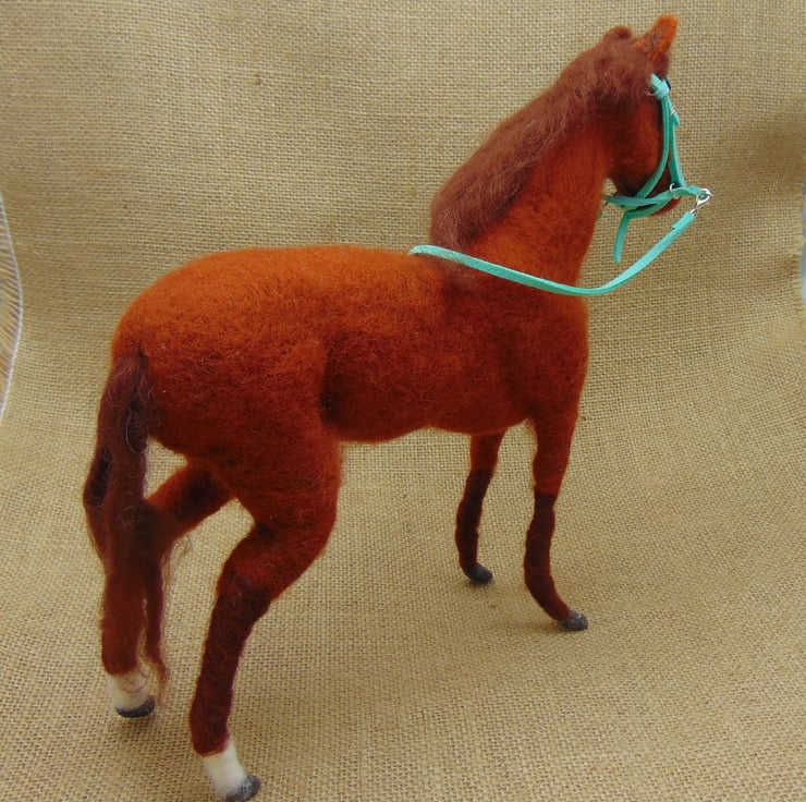 Needle Felted Horse, Chestnut Horse Figurine, Soft Horse Sculpture
