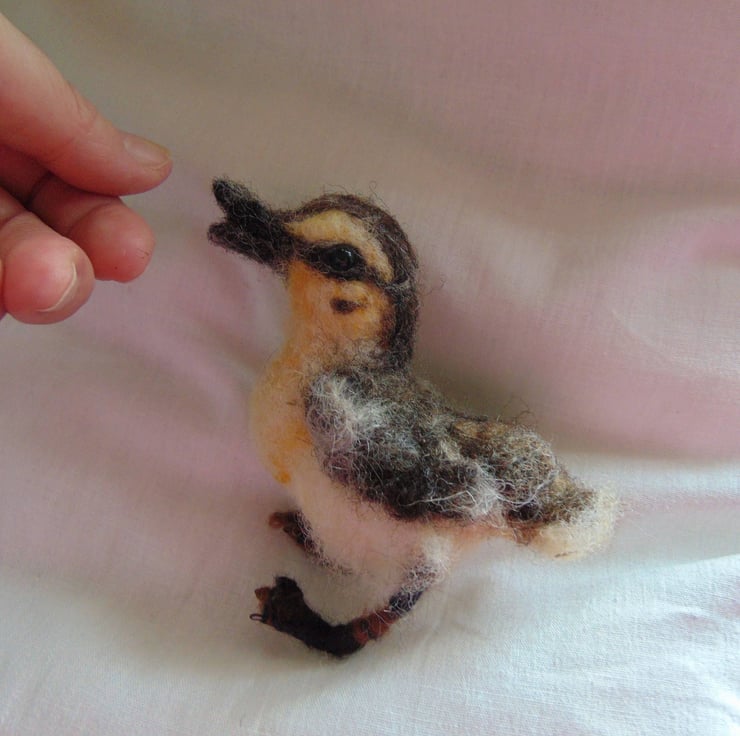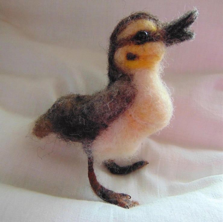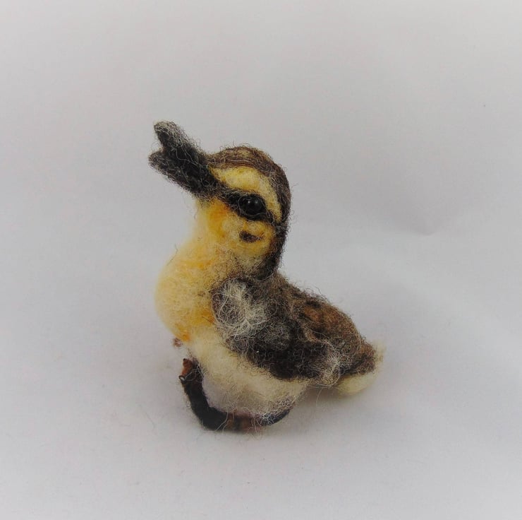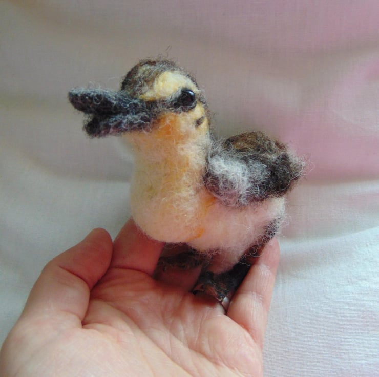 A realistic cute, fluffy duckling. This little one is made using wool which is felted over a wire armature and sculpted into shape using a barbed felting needle.