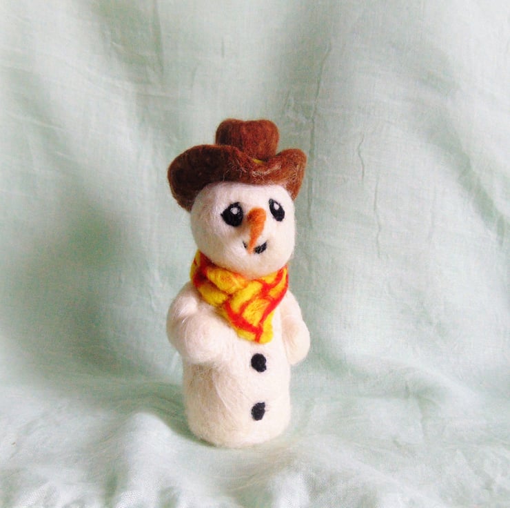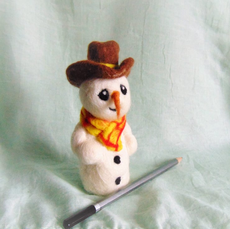 This little snowman with a smiling face would make a lovely desk companion or a cute Christmas decoration for your home or as part of a centre piece for your winter dining table.
