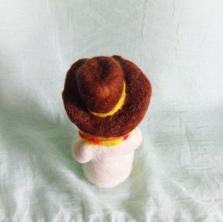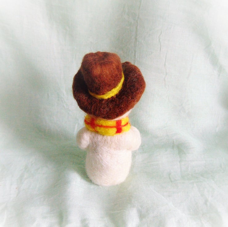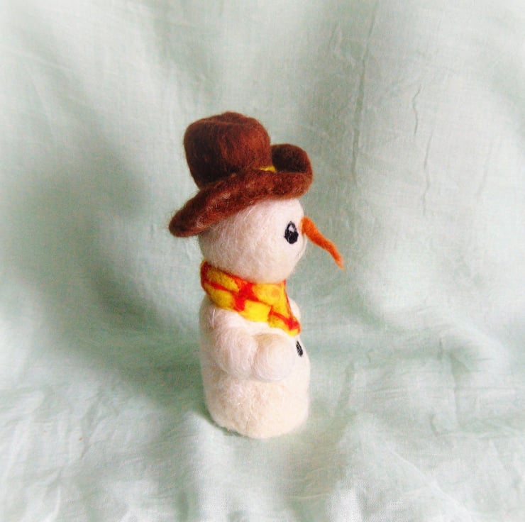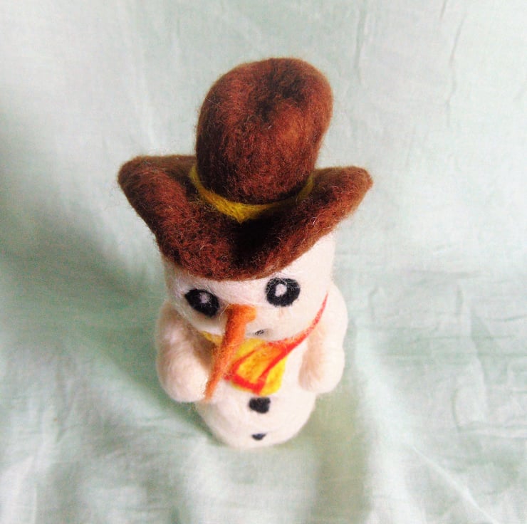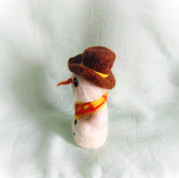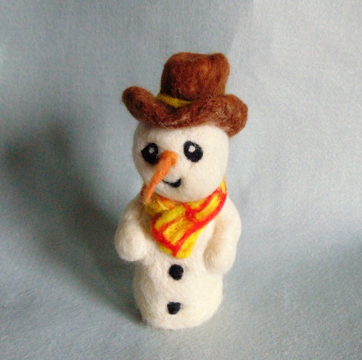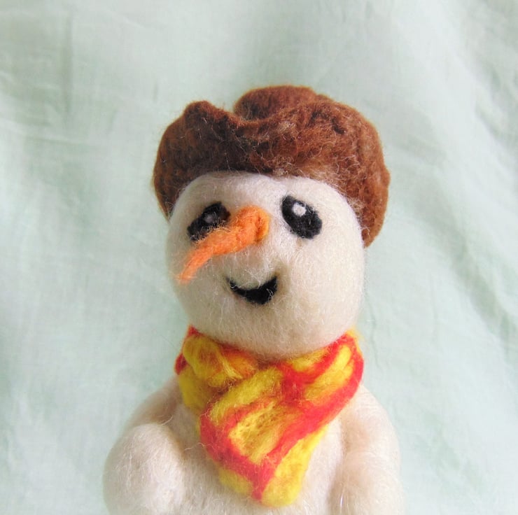 He has been made by hand sculpting wool with a needle. I have also blended a hint of trilobal nylon to give him a subtle frosty sparkle.