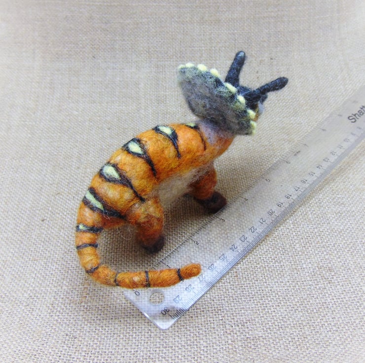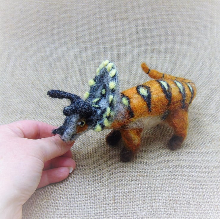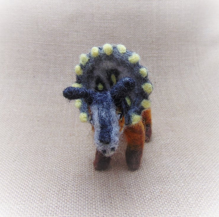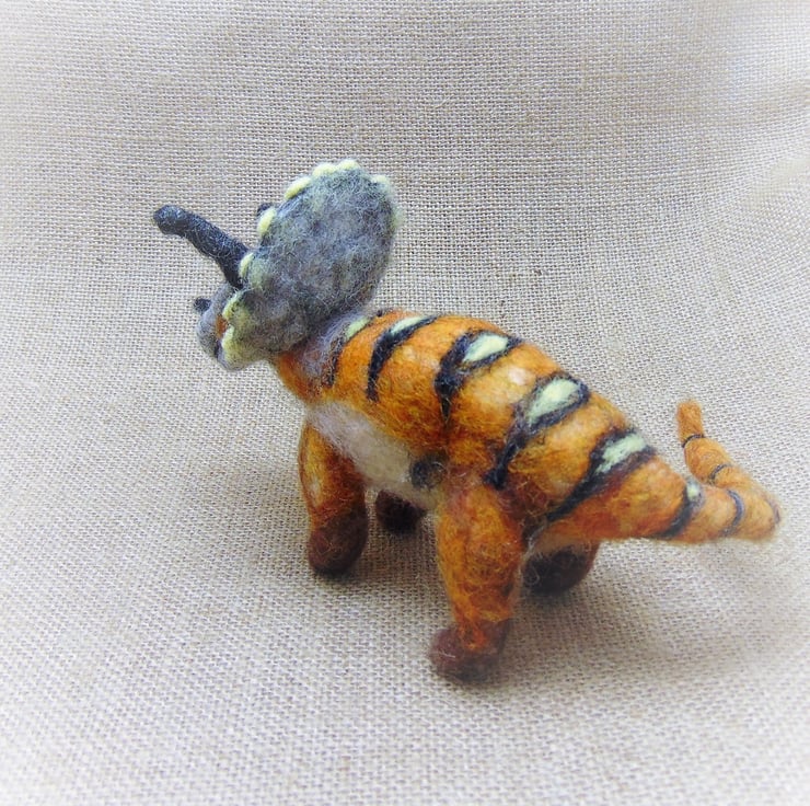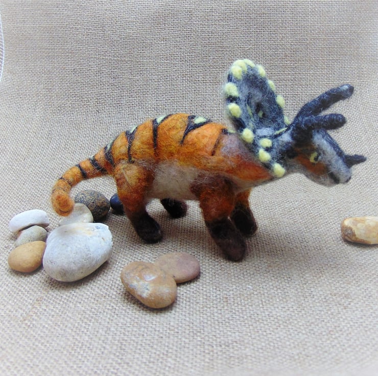 The Triceratops was a herbivorous dinosaur living in the late Cretaceous period. Its name means "3-horned face". Their "frill" and their horns make them look pretty fearsome, but also instantly recognisable. This one, however is more cute than fearsome, although don't tell him that!