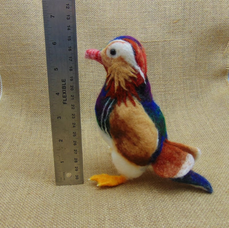 Mandarin ducks are beautiful birds. I love their bright colours and happy-looking faces. Now you can own your own, and this one won't need feeding, but he will be happy to sit by you and keep you company. He would also make a great gift for a bird-lover, or someone who loves wildlife, especially ducks.