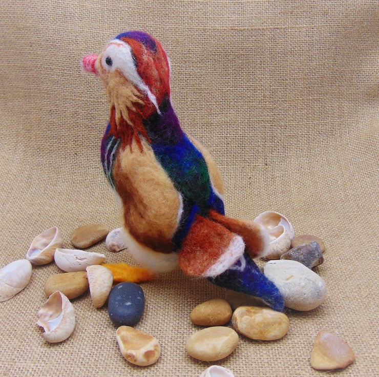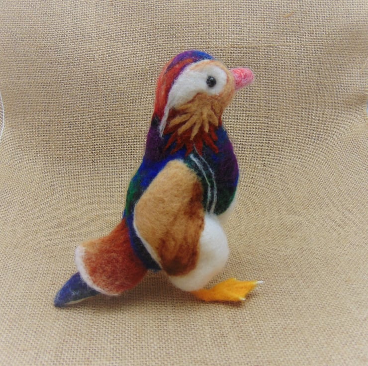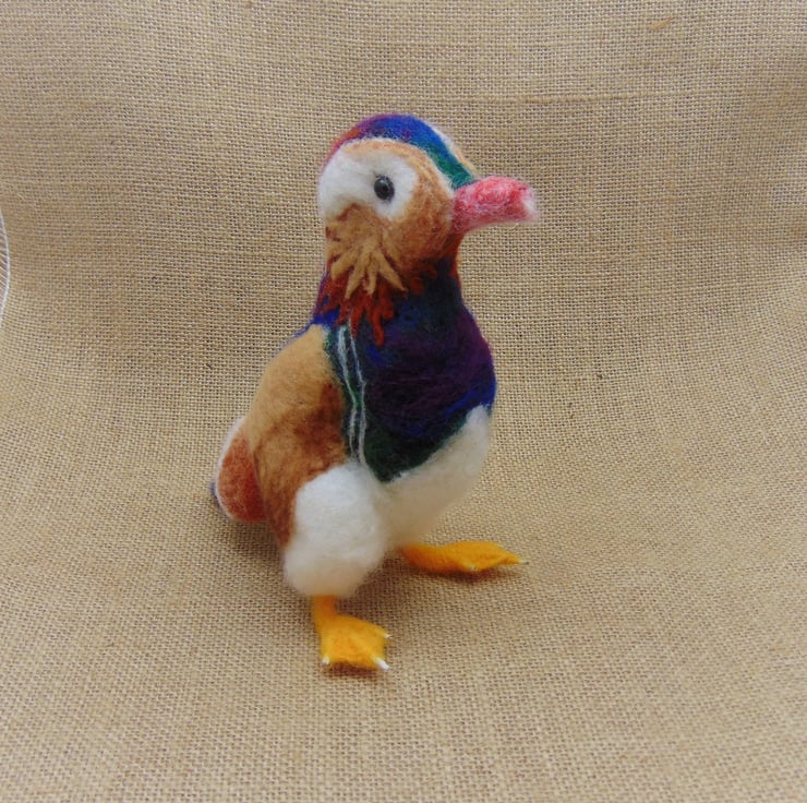 Needle Felted Duck, Mandarin Duck Ornament, Soft Sculpture