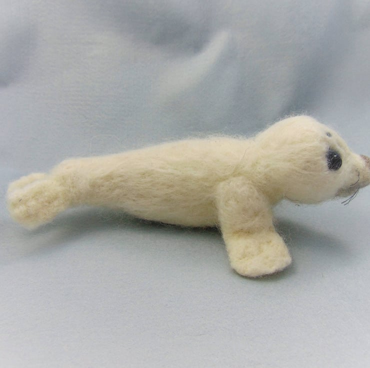 Felted Winter Ornament, Felted Baby Seal, Soft Seal Figurine, Little Snow Animal