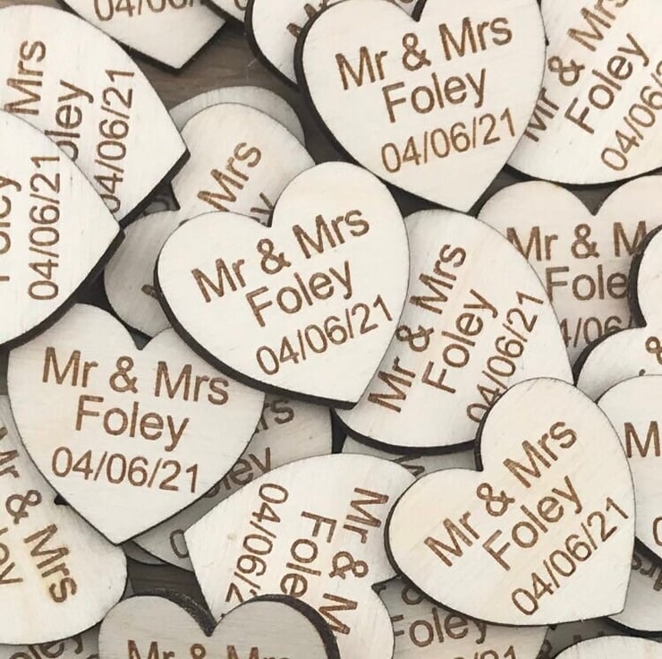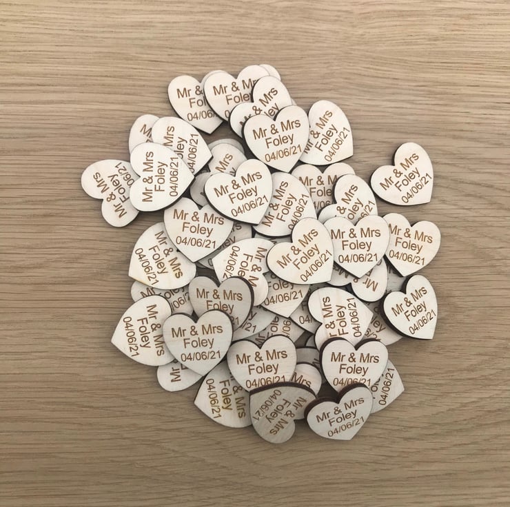 Handmade personalised 3cm wooden hearts laser cut from 3mm Birch wood.