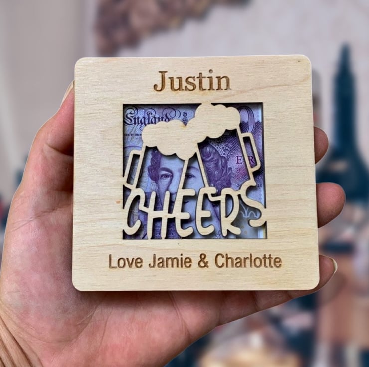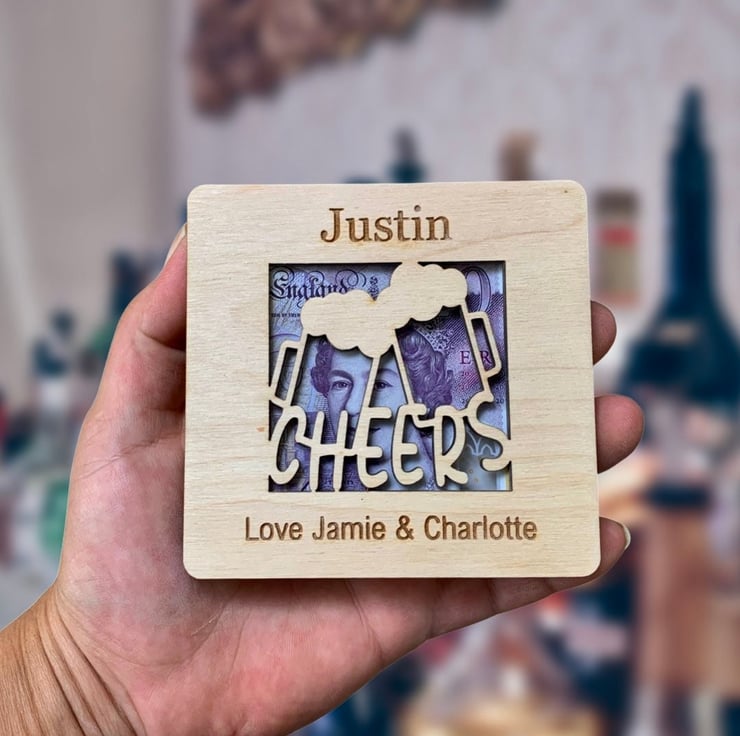 What better way to gift money for a Birthday Than presenting them with a personalised wooden money holder, personalised with there name.