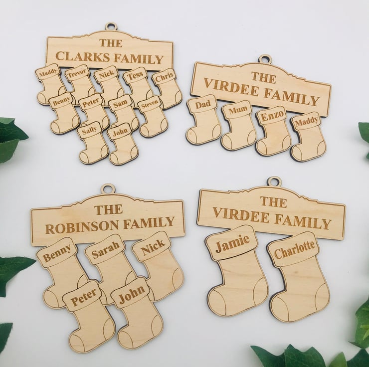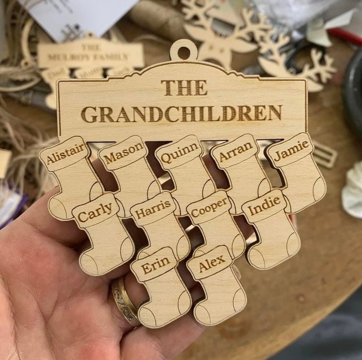 Personalise with the Grandchildren or the the family name and the names you would like engraved on the stockings.