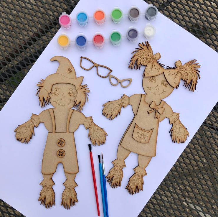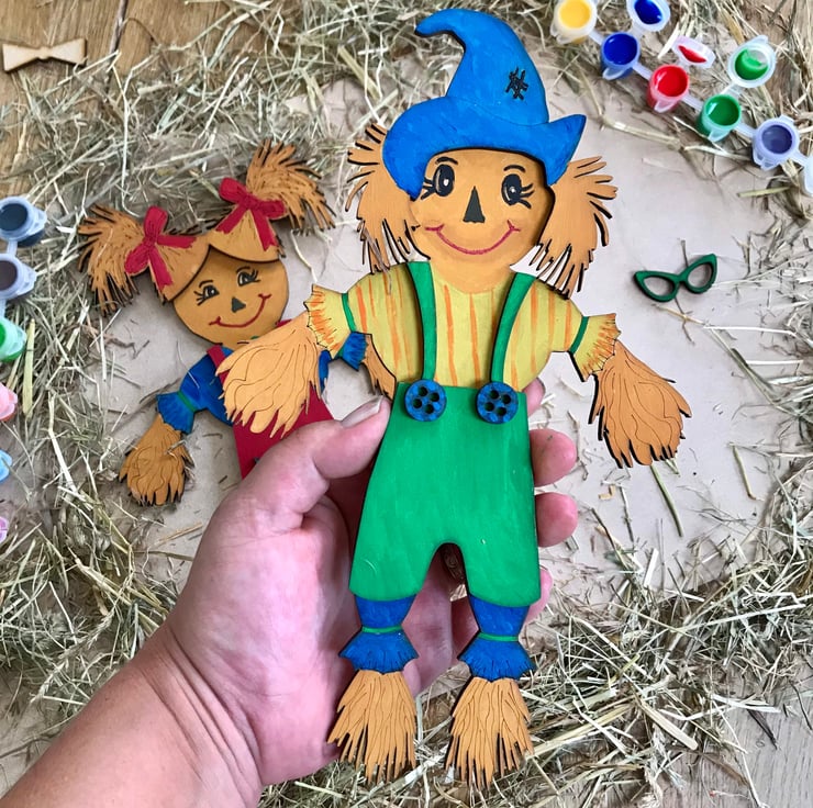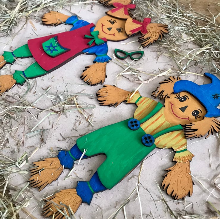 Each scarecrow is roughly 27cm high x 16cm wide after completed. These will make a fabulous decoration for a wall or shelf and will be loved for years to come. Made from MDF
