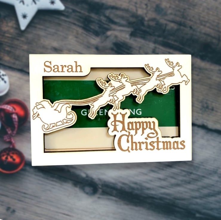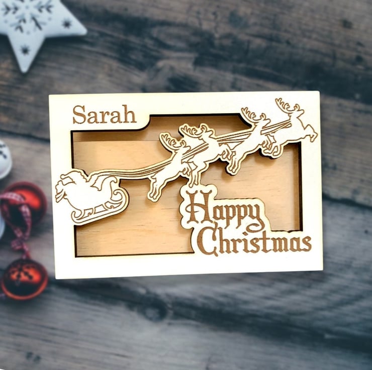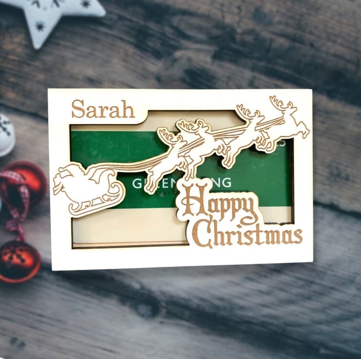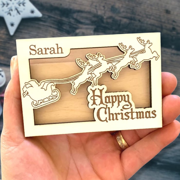 These handmade personalised gift voucher ornaments are made from mdf and Baltic birch wood. Laser engraved for a professional finish.