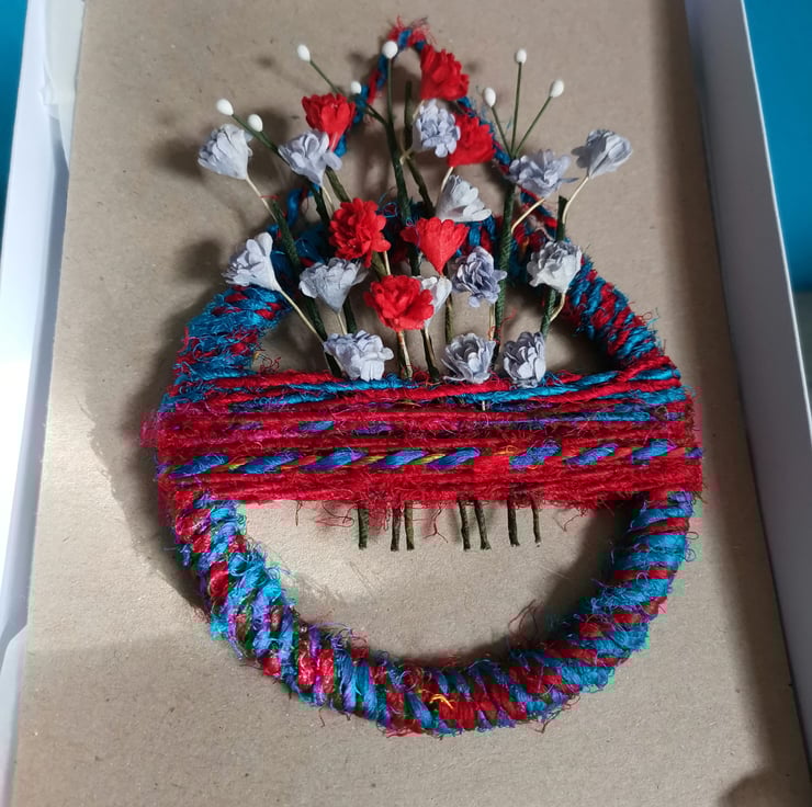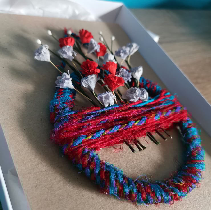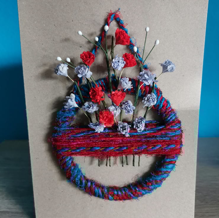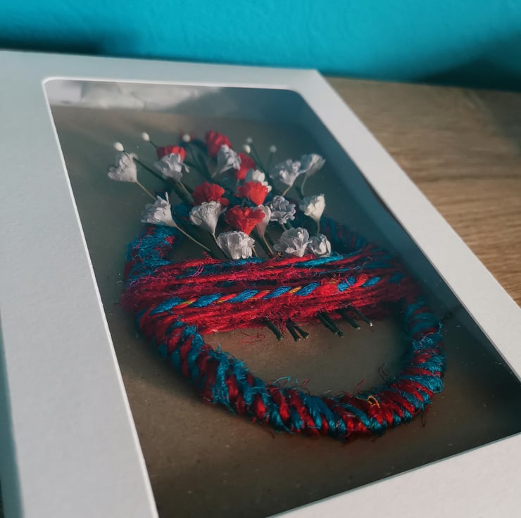 Blue and Red mini flower wreath - luxury keepsake greeting card