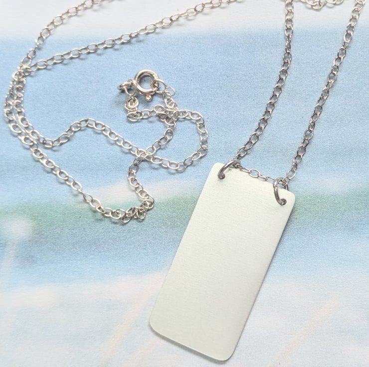 Approximately 34 by 17mm it comes on a recycled sterling silver chain 18 inches long and should you want them matching earrings are available. Wear them and bring your holiday memories home.