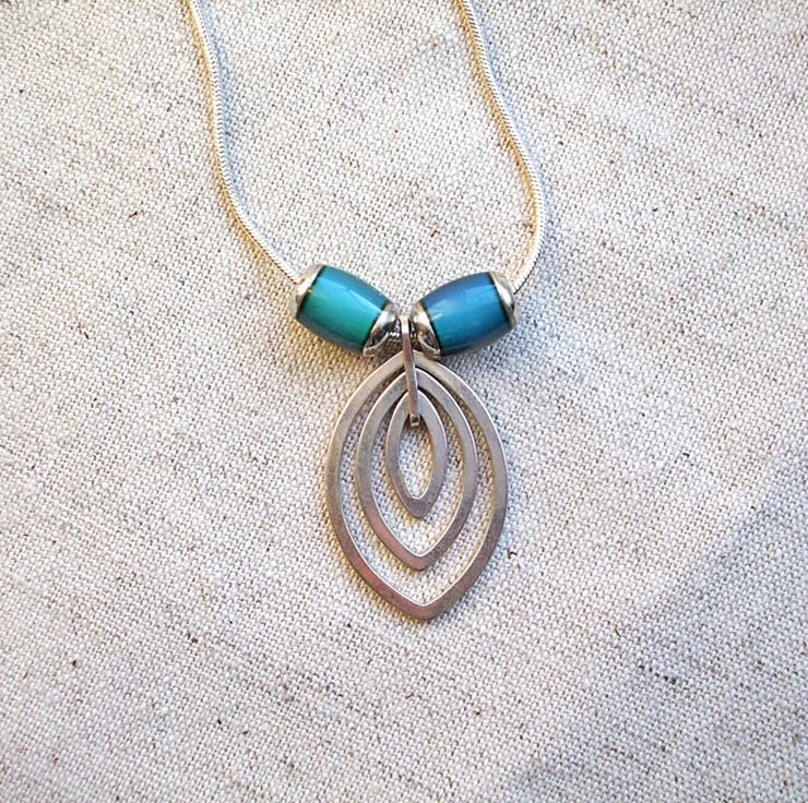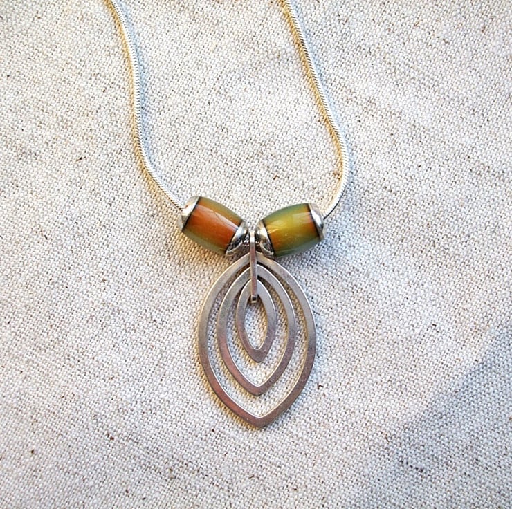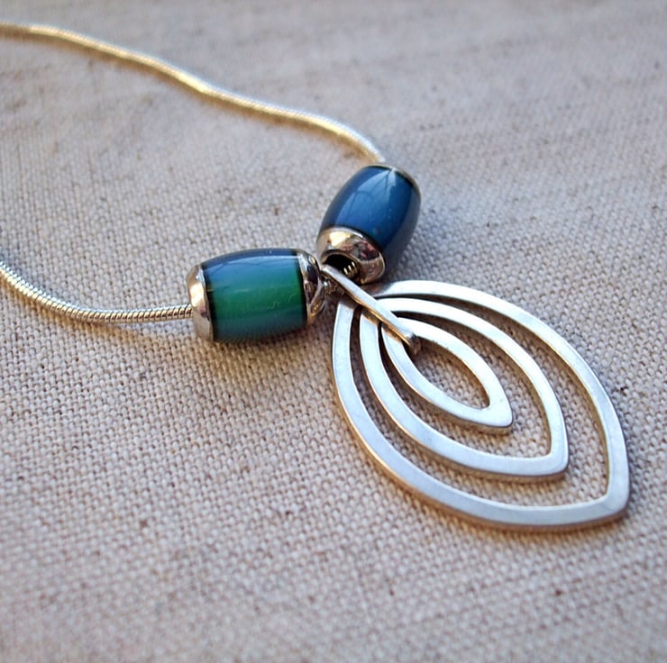 This unusual sterling silver pendant is an abstract design of three petals, each able to move independently of each other. Either side of this is a genuine Mirage brand mood bead - see the list below for the meaning for each colour.