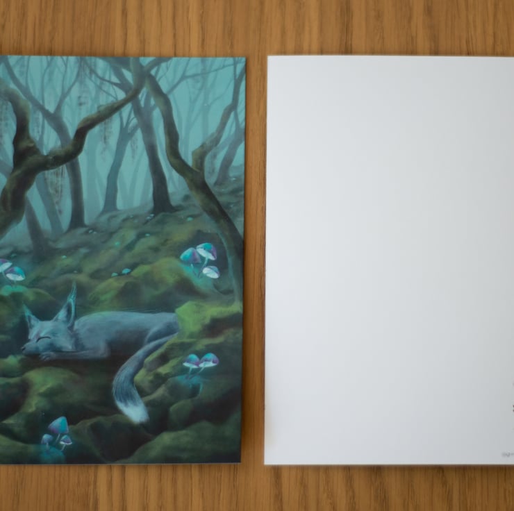 Size: 10.5 x 14.8 cm. Printed on 300gsm matt paper. Will be delivered with a craft paper envelope, compostable bag and a "thank you" note in a A5 hardback envelope.