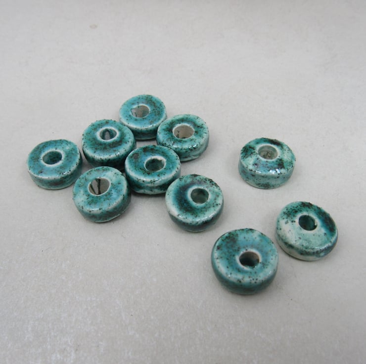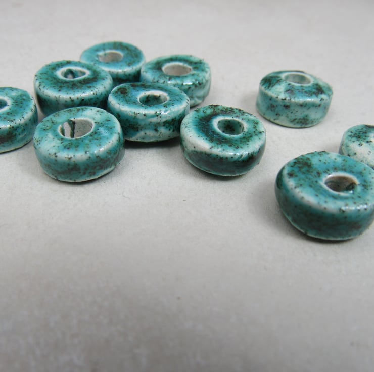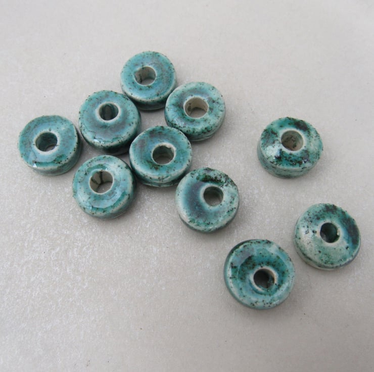10 Small Jade Green Glazed Ceramic Washer Beads