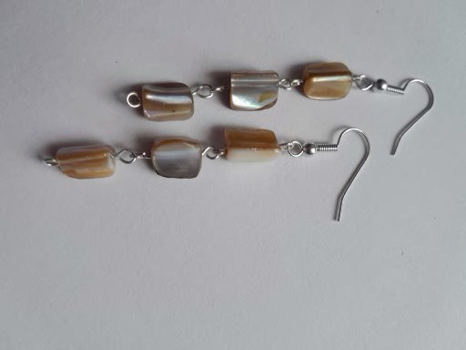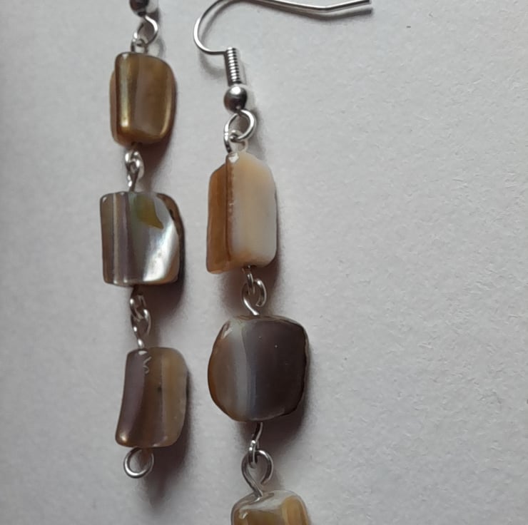Stunning pair of recycled shell drop earrings set in recycled silver drops.