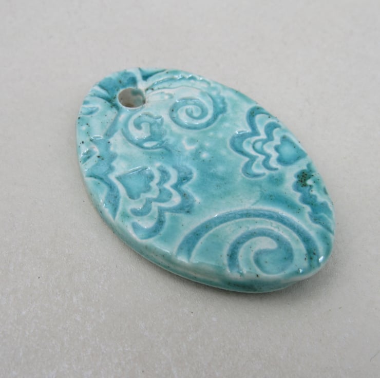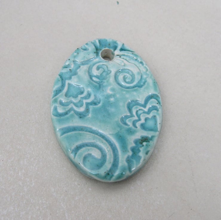 Large Jade Green Brocade Ceramic Pendant