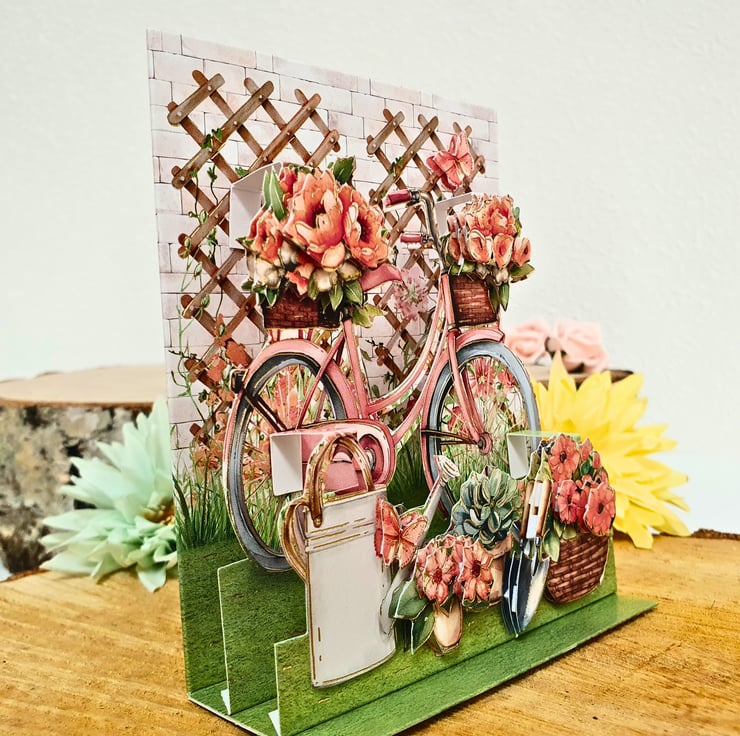 Handmade by "The Sloth's Cavern" using the Hunkydory "Beautiful Bicycle Pop-Up Stepper Card" topper collection.