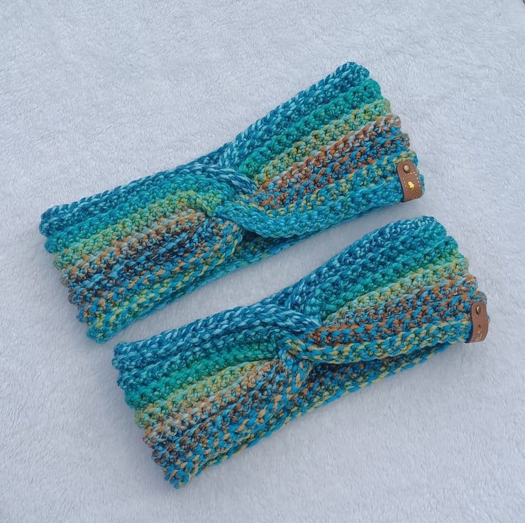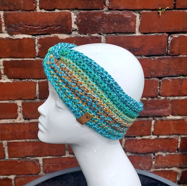 Marine (blue green brown) colours chunky headband will keep you comfortable cold and windy days