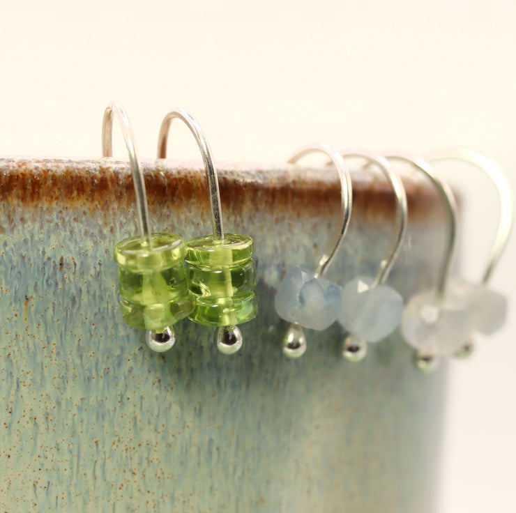 Tiny lightweight Argentium Silver Earrings with Peridot tyre beads.