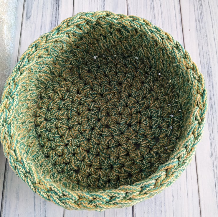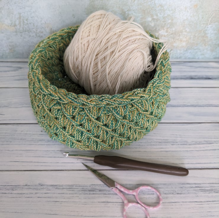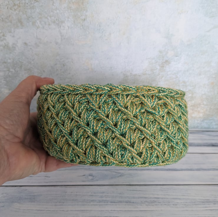 Large enough to use as a fruit bowl or to keep a small knitting or crochet project to hand, it's both useful and decorative.