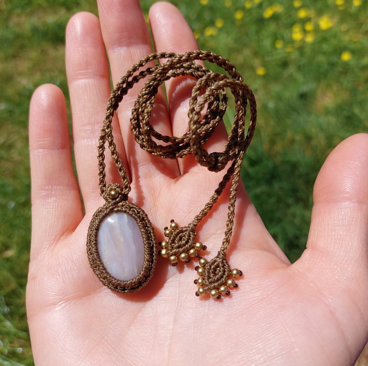 Handmade pink opal pendant. Made using a good quality waxed cord. The cord drop measures approximately 43.5cm with a sliding knot for adjustability and detailed cord ends. The beads are 100% tibetan brass.