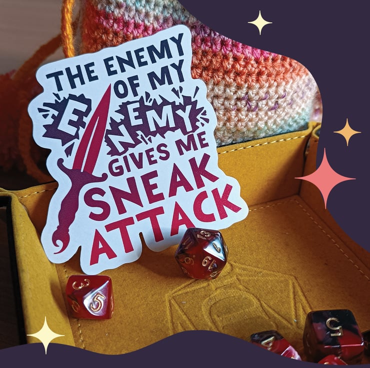 Waterproof, matt, permanent adhesive sticker roughly 90mm x 90mm - stick on your laptop, your water bottle, your dice tray, your DM screen - wherever you like!