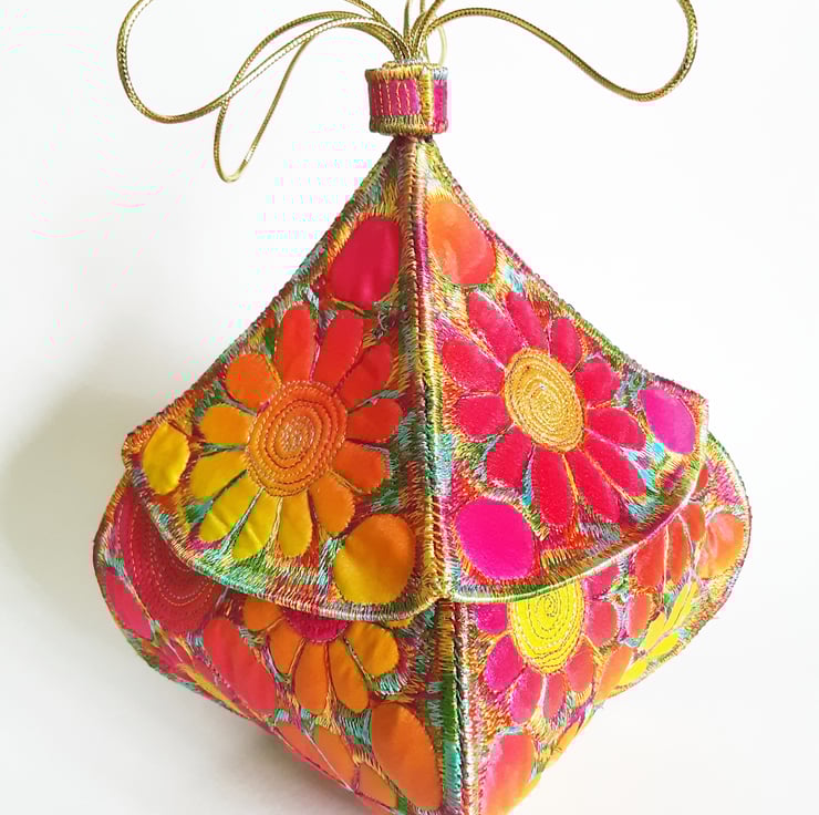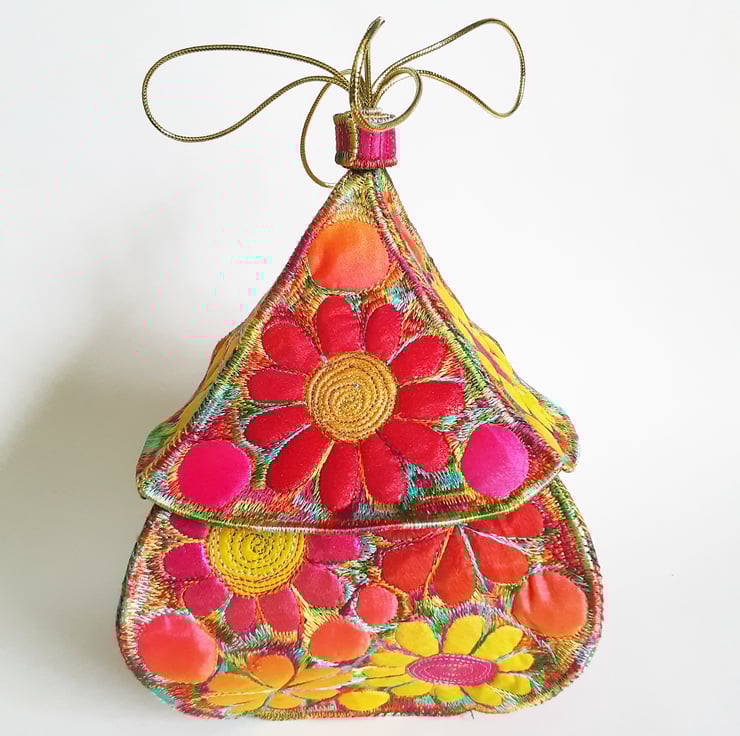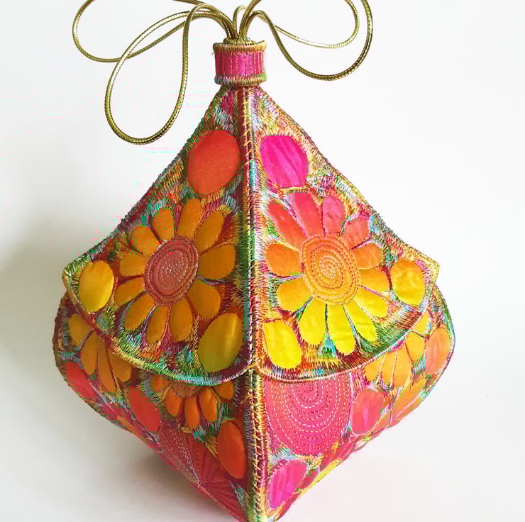 Made from layers of fabric including hand-dyed egyptian cotton and silks using applique and free machine embroidery
