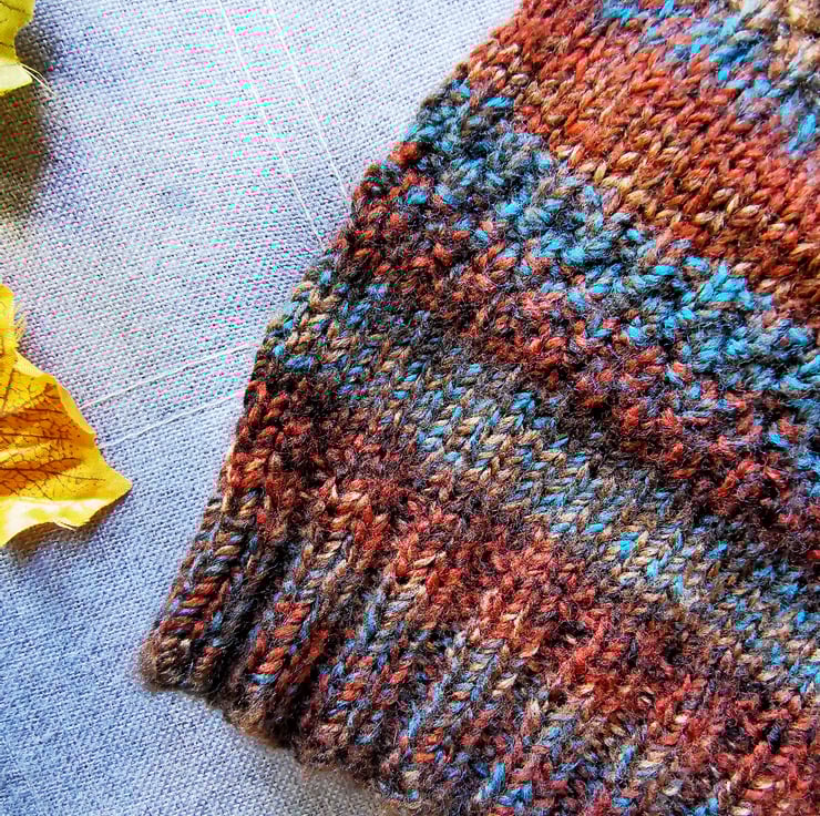 - Squishy moss stitch pattern blended with classic stockinette stitch for comfort and warmth