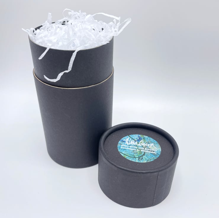Finished with a white organza ribbon hanger. Supplied in a sturdy black tube gift box with shredded white tissue for protection, perfect for posting.